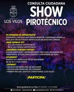 Los resultados oficiales que definirán si Los Vilos contarán o no con fuegos artificiales para dar la bienvenida al 2026, serán anunciados públicamente el jueves 6 de noviembre a las 11:30 horas .